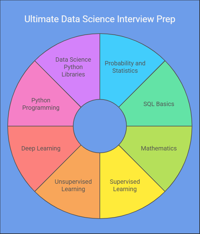 A comprehensive interview preparation guide to acing data science interviews. This can be your ultimate study guide to help you prepare for your next data science interview.